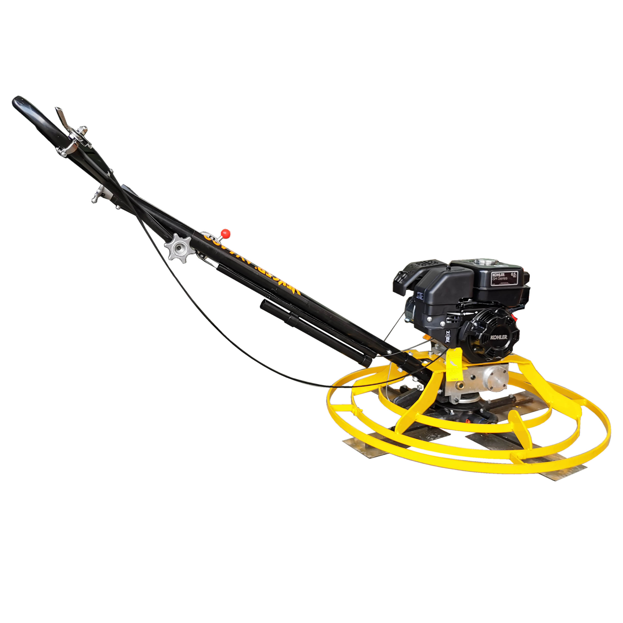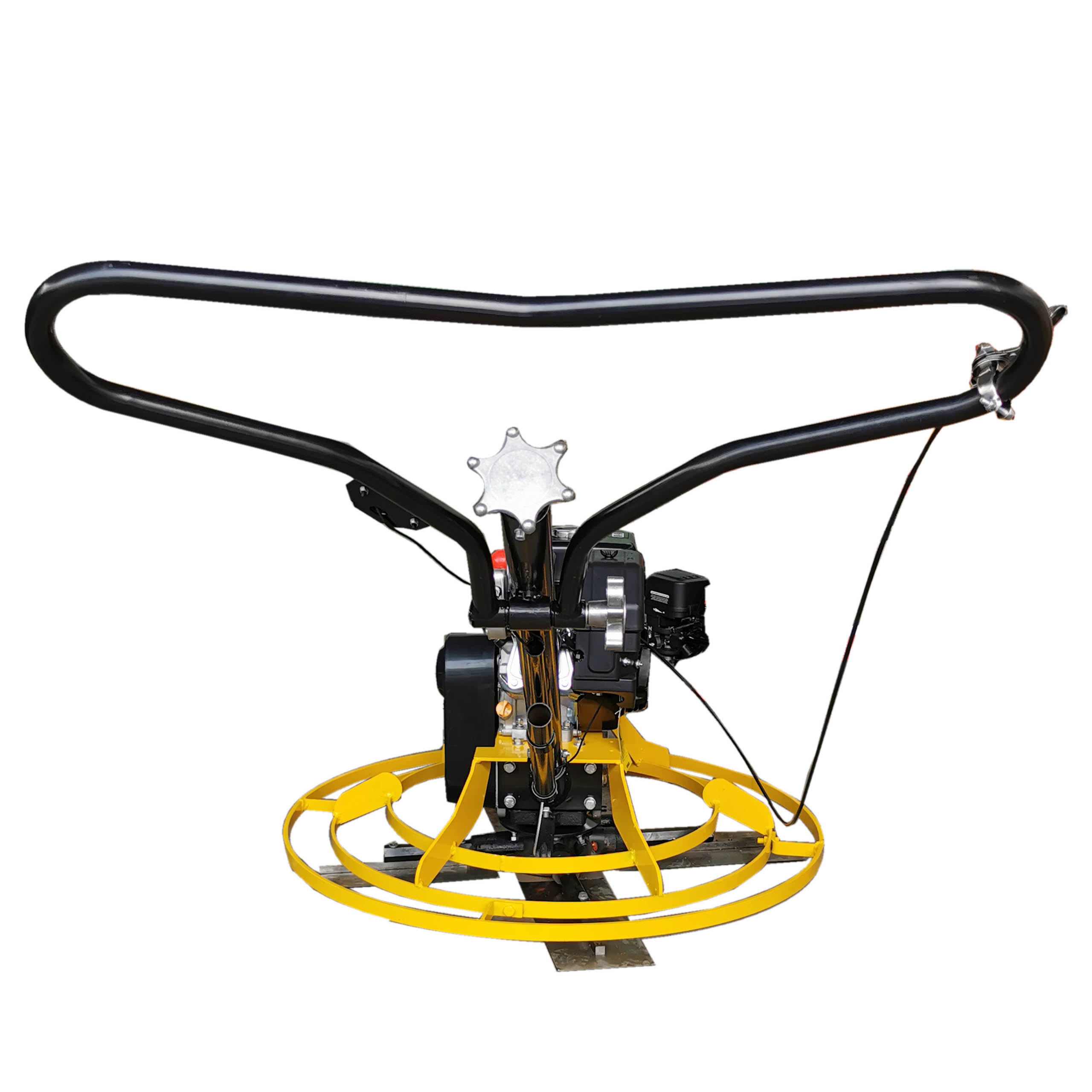 El equipo cuenta con un plato de 92 centímetros de diámetro, lo que permite cubrir áreas más amplias en menos tiempo. esta característica lo convierte en una herramienta especialmente útil para trabajar en superficies medianas y grandes, aumentando la eficiencia sin sacrificar la calidad del acabado. el plato tiene un diseño resistente que soporta el contacto constante con el concreto fresco, ofreciendo un pulido parejo y profesional.