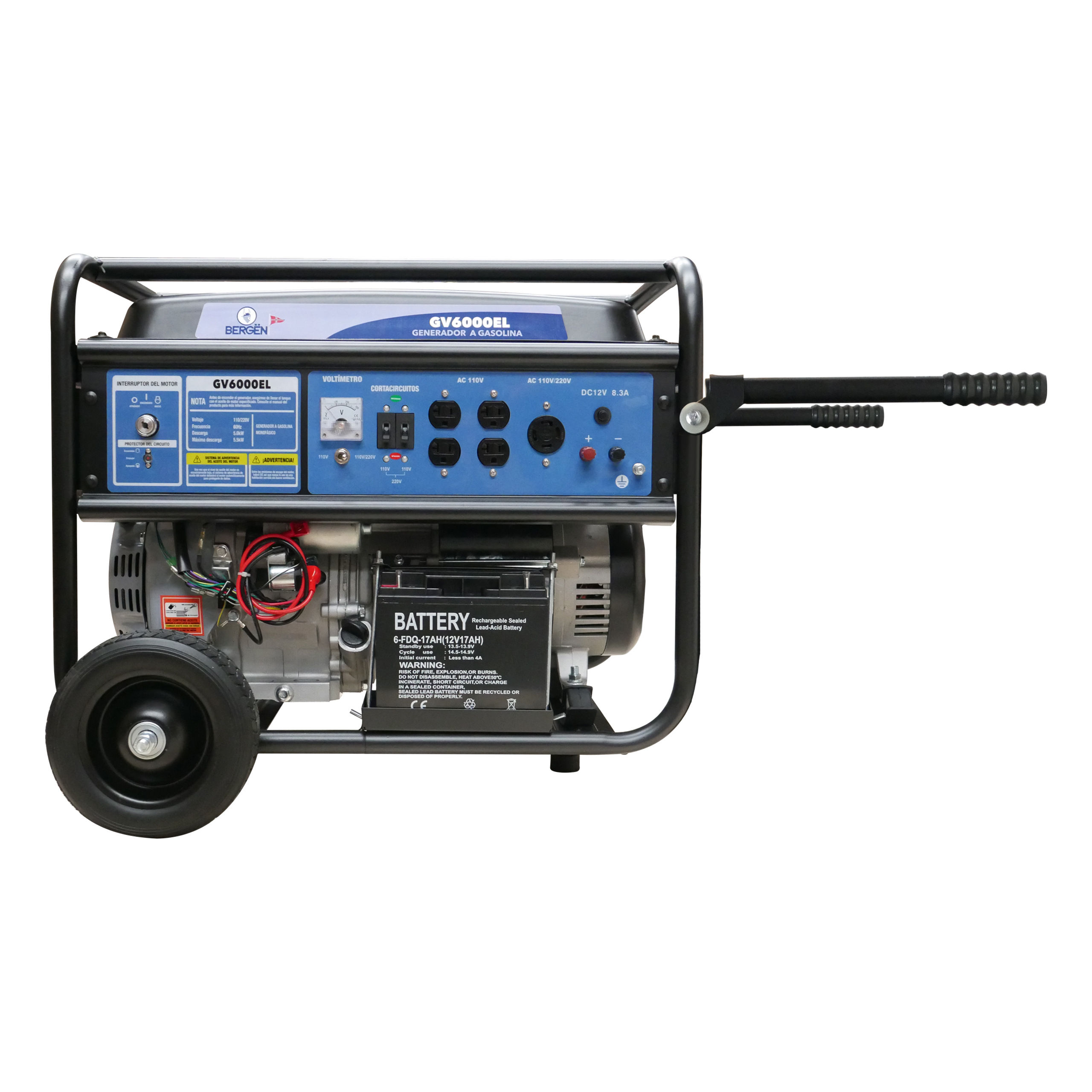 Generador de luz bergen gv6000el. monofásico con motor a gasolina (4 tiempos)