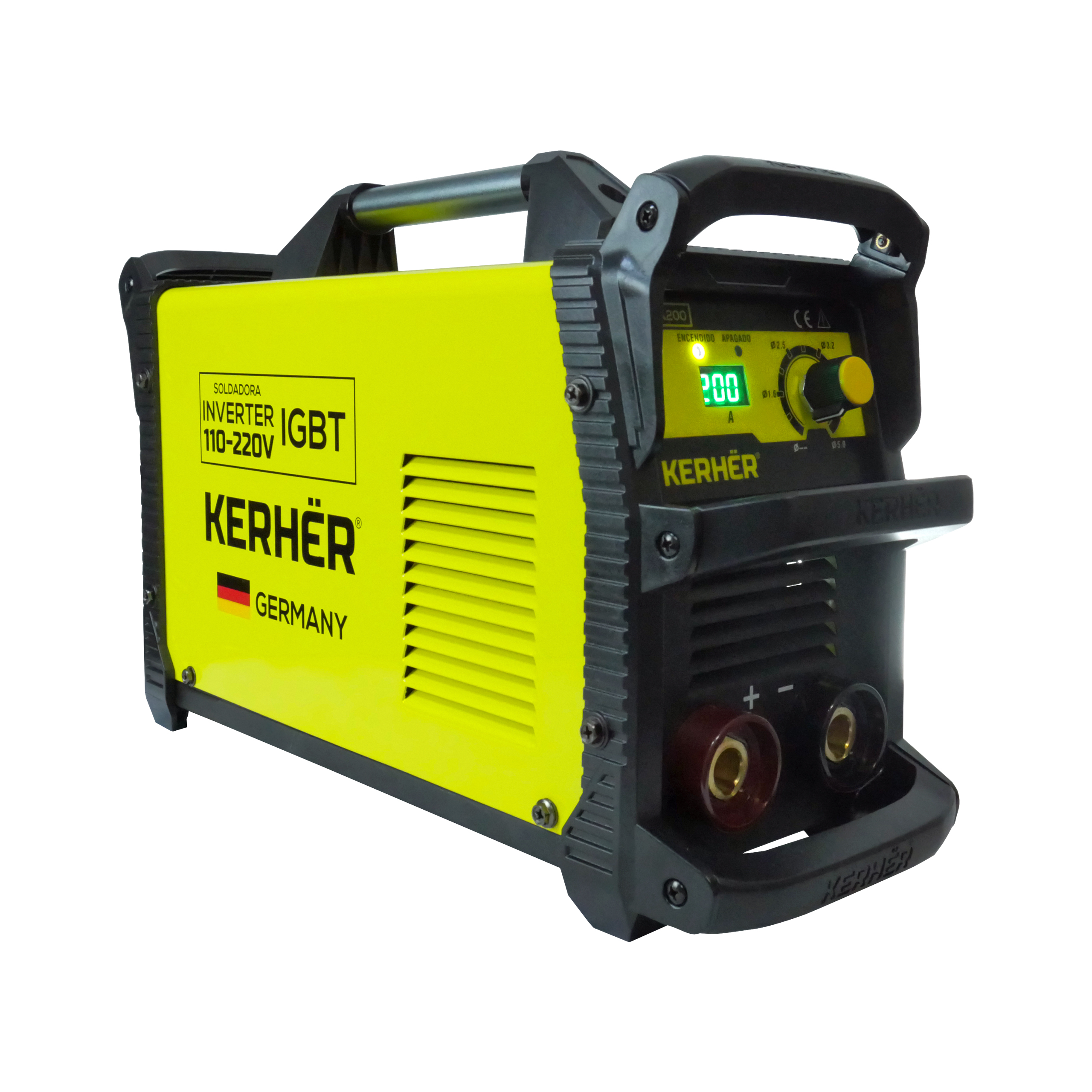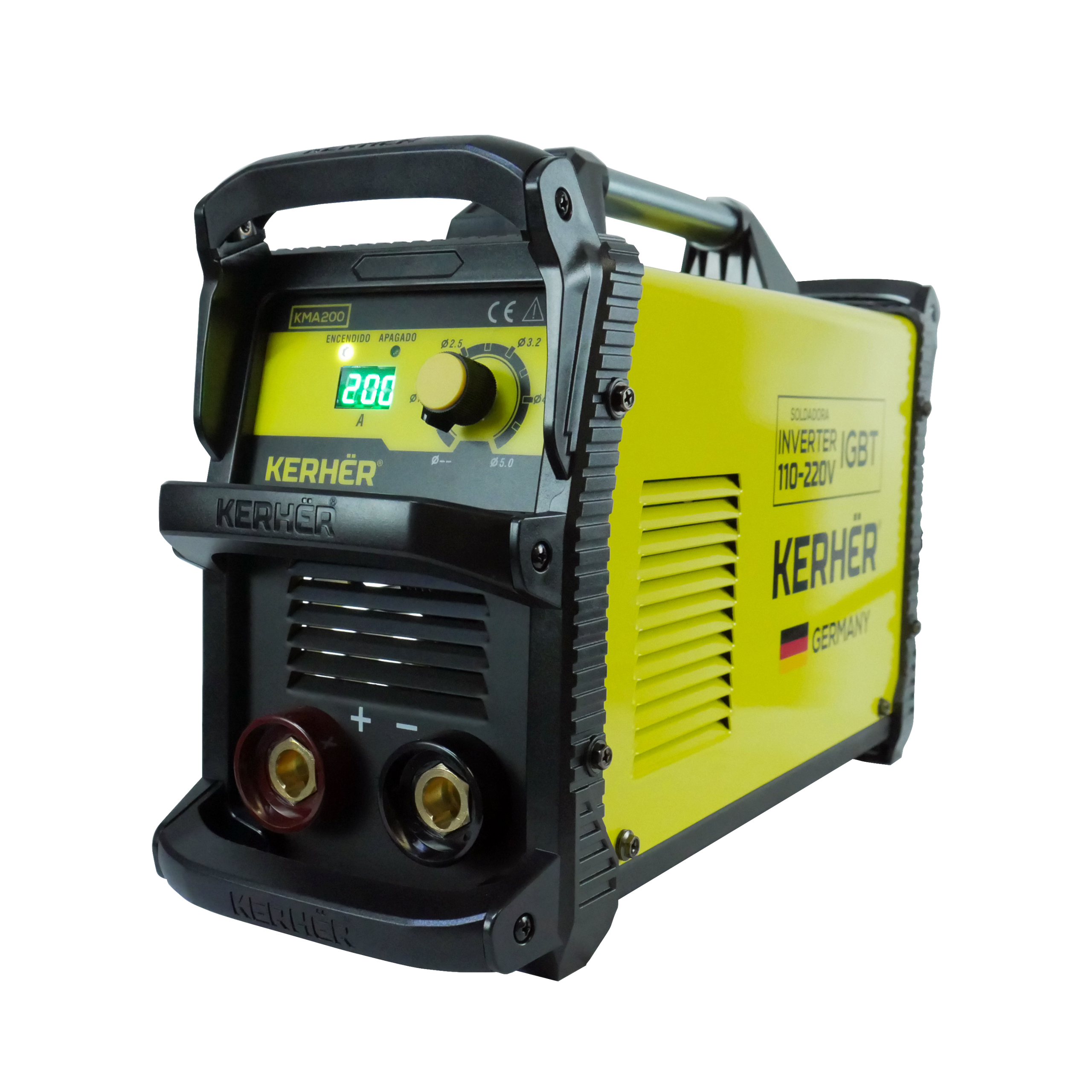 Soldadora inversora kerher kma200. soldadora inverter igbt 110v/220v para smaw de uso profesional, con tecnología alemana ideal para realizar todo tipo de soldadura de electrodo. quema todo tipo de electrodos hasta 5/32"".