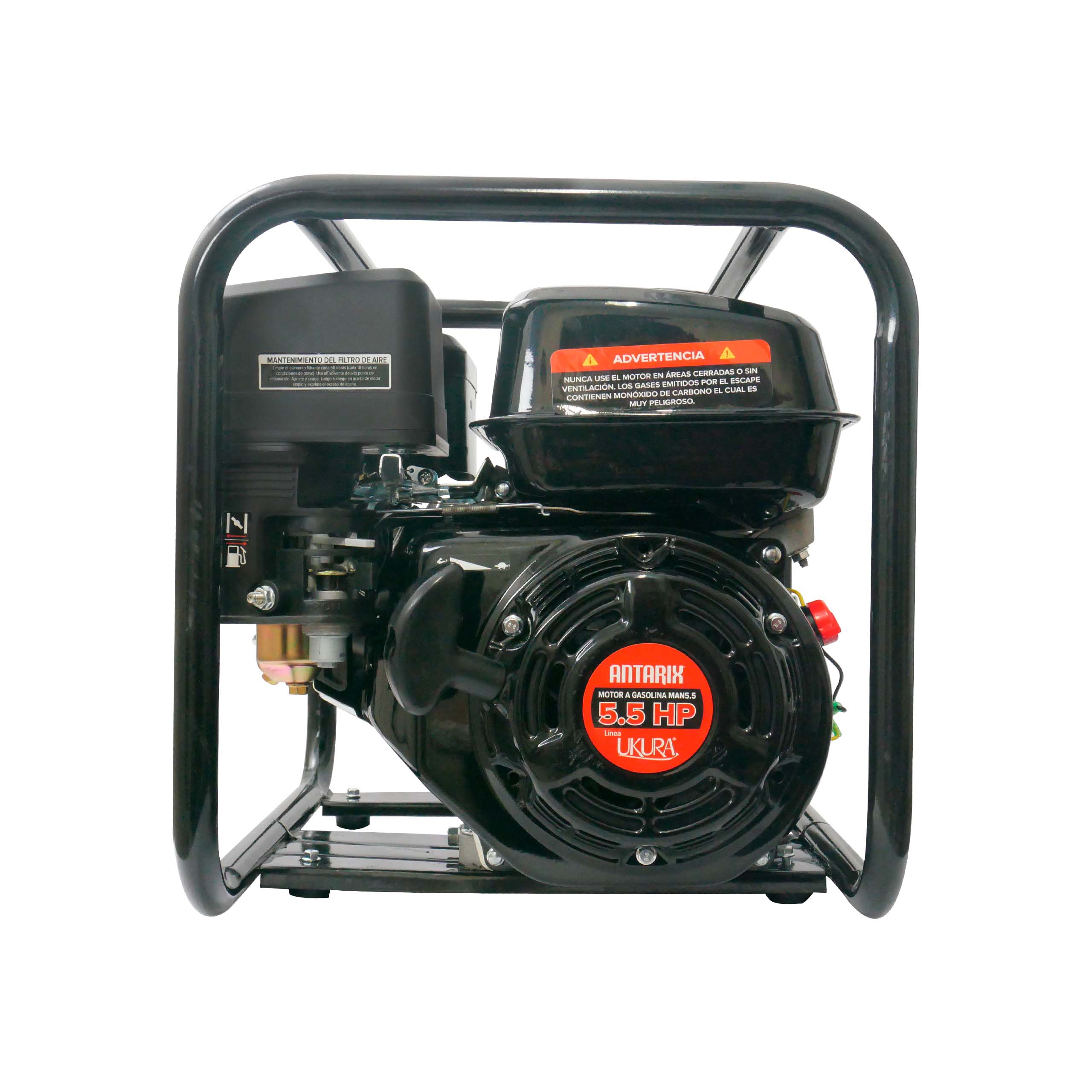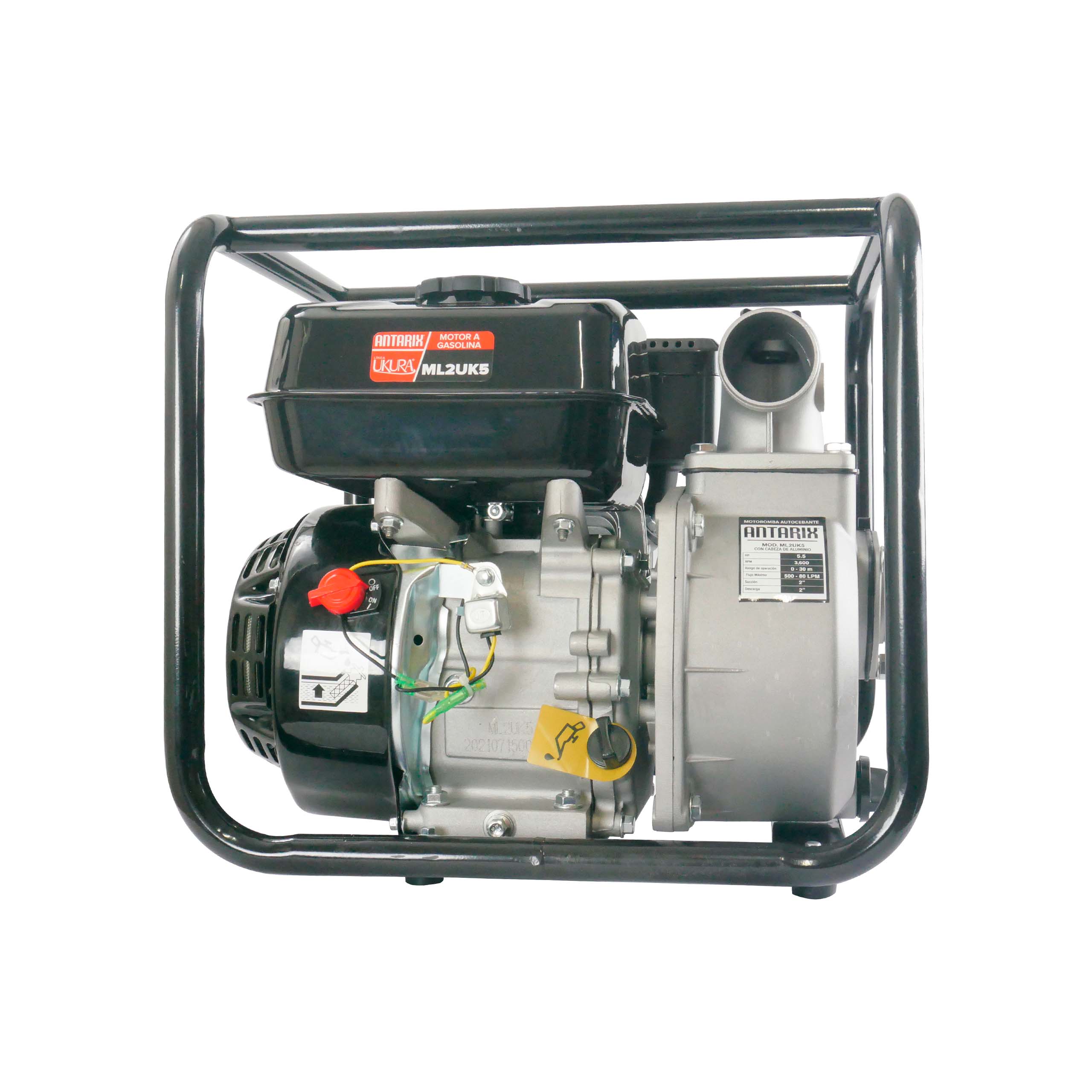 Equipo de riego agrícola autocebante antarix ml2uk5rr 2x2 con motor ukura 5.5 HP, diseñado para ofrecer eficiencia y confiabilidad en operaciones agrícolas.