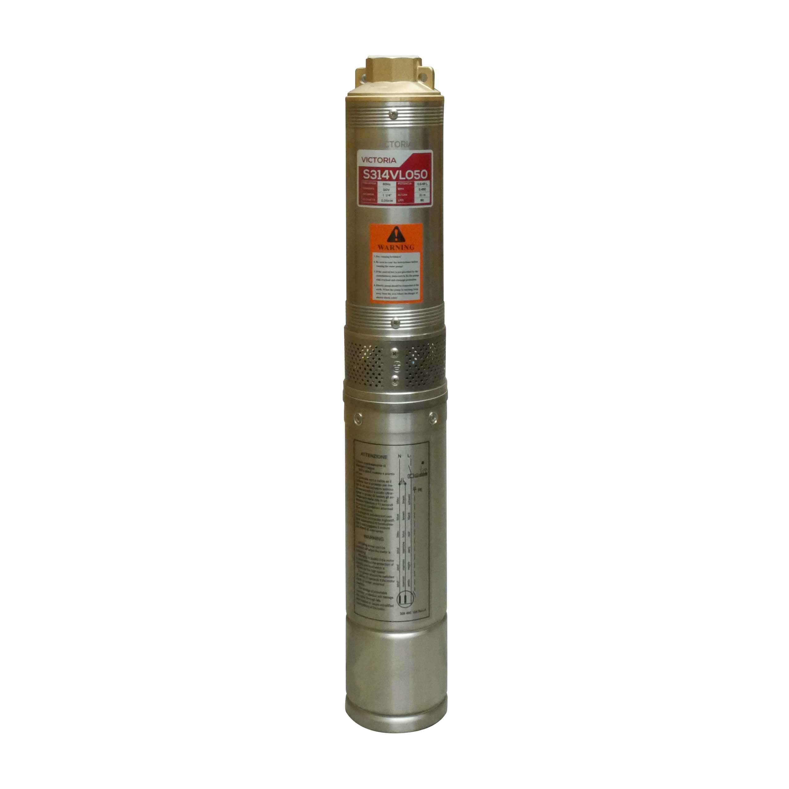 Equipo de riego sumergible monofasica crown victoria s314vl050, cuerpo de 4"" con calidad europea. incluye caja de control. cuerpo de acero inoxidable, impulsor de noryl. práctica y eficiente. ideal para extracción de agua de pozos profundos. instalación en pozos desde 4"" de diámetro. para uso agricola.
