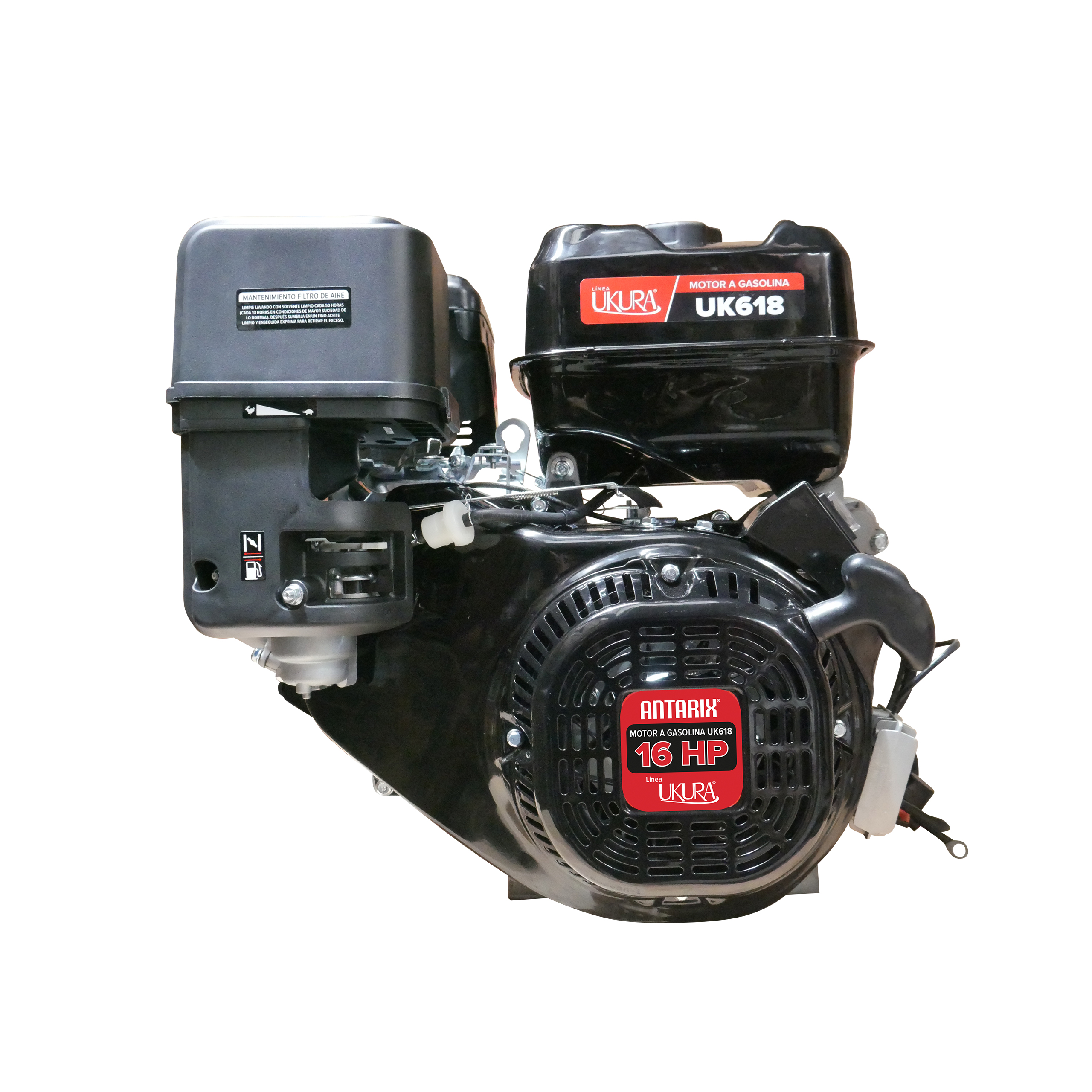 Motor a gasolina ukura 18 HP, cigüeñal tipo cuña, ideal para equipos agrícolas e industriales.